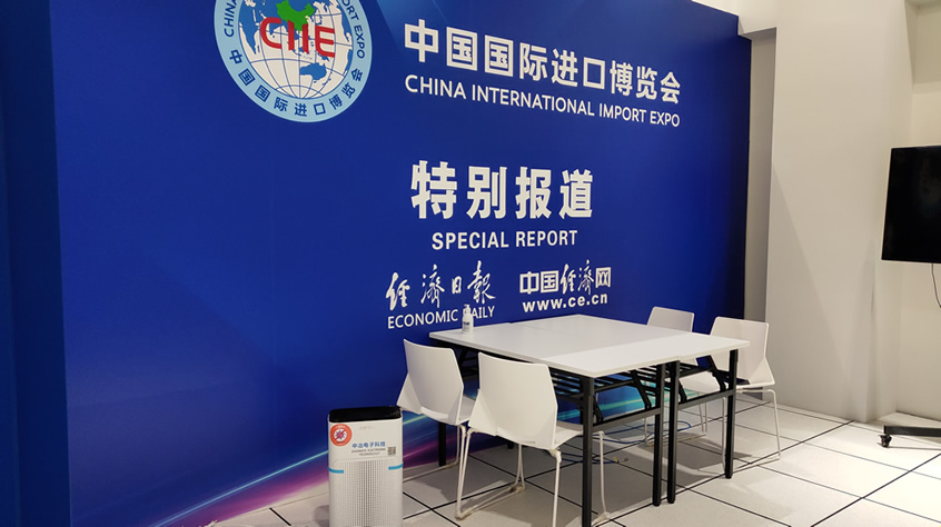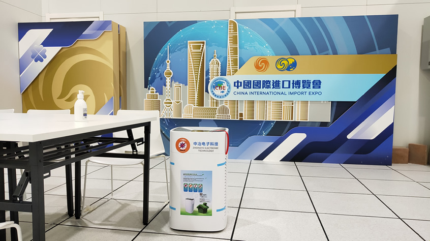 純物理方法殺滅新冠病毒的空氣凈化器在國家會展中心(上海)第三屆進博會10000平方新聞中心安裝完畢,以及新聞中心全體工作人員人手一份的殺滅新冠易呼吸口罩伴侶已送到指定地點,寧波中冶電子科技公司為進博會新聞中心安全防疫保駕護航!